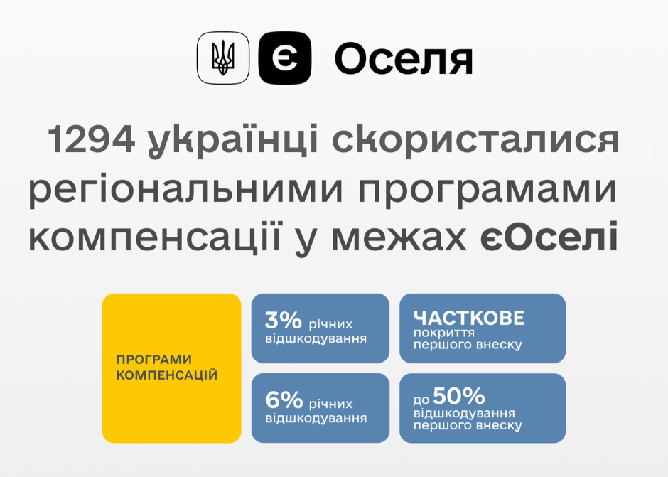 Найбільша кількість позичальників, які отримали допомогу у межах регіональних програм компенсацій, — у Львівській області. Тут Львівська ОВА допомогла 525 позичальникам єОселі. 426 учасникам програми — Одеська ОВА та 101 — Чернівецька ОВА.