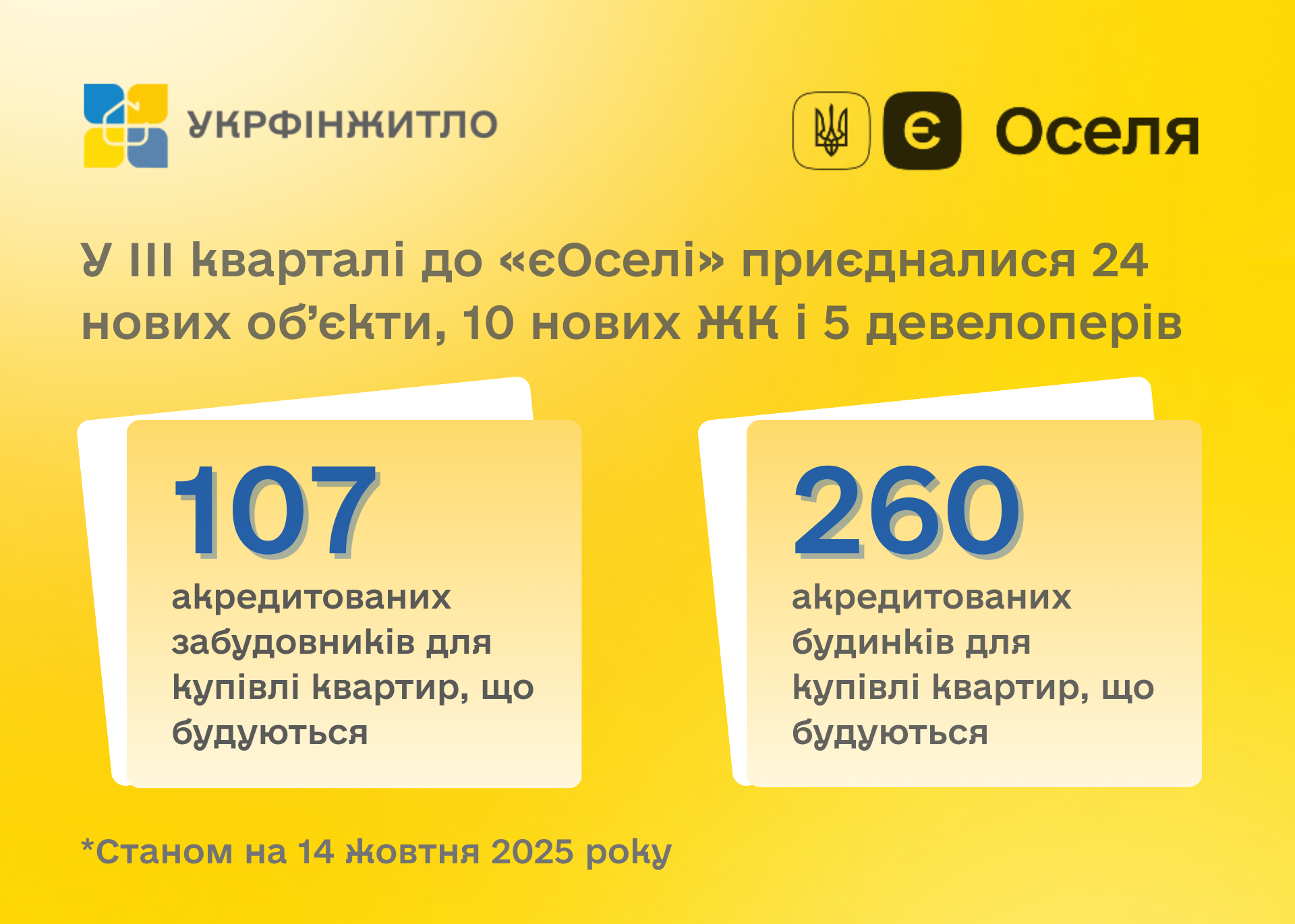 У третьому кварталі цьогоріч до «єОселі» приєдналися 24 нових об’єкти, 10 нових житлових комплексів (ЖК) і 5 девелоперів. Це означає, що українці отримали ще більше можливостей обрати власне житло за програмою доступної іпотеки.